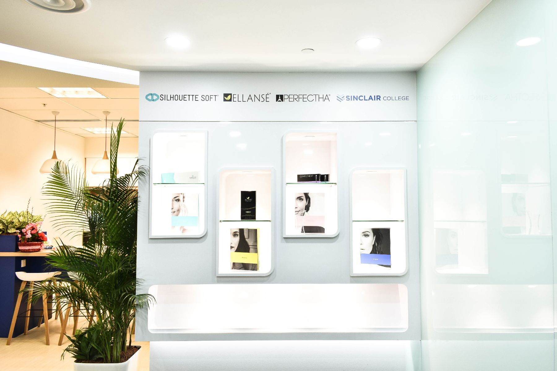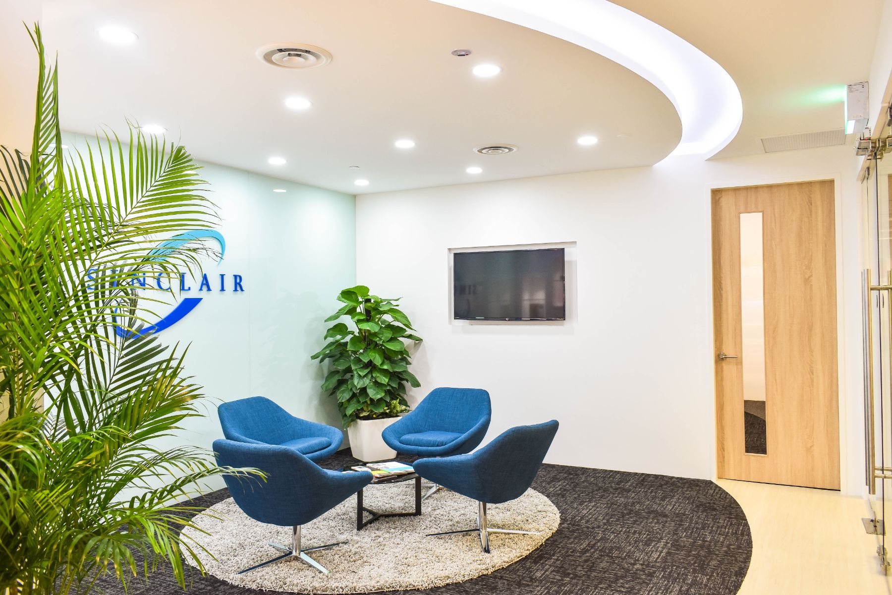 The client is a multi-national company headquartered in London with satellite office in Singapore. From their current office in one of the shop houses turned office space in Duxton Area, they moved to a new and bigger office in Clemenceau Avenue. Clean lines, using curvilinear shapes and predominantly colored in Sinclair’s company color, X Space conceptualize a space that conveys Sinclair’s branding as a Global Aesthetic company.